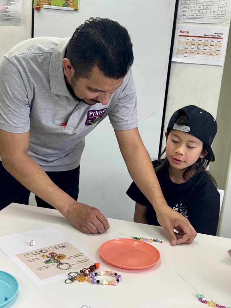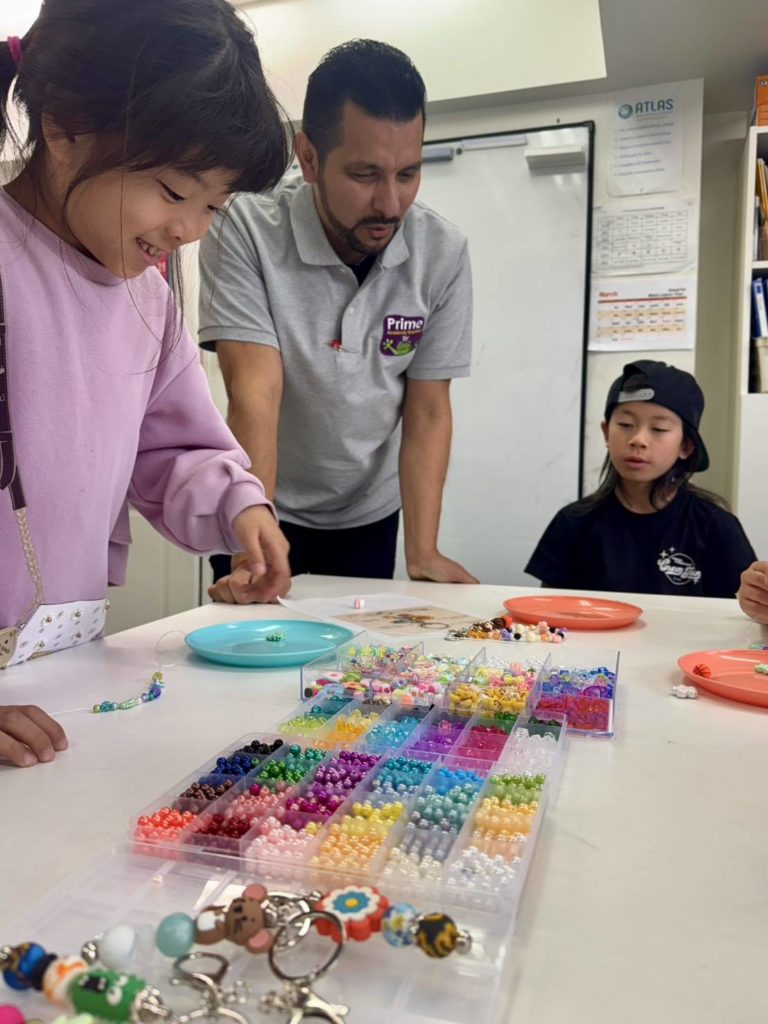 カラフルなビーズや、大小さまざまなパーツを前に、子どもたちはワクワクしながら真剣な表情でした。