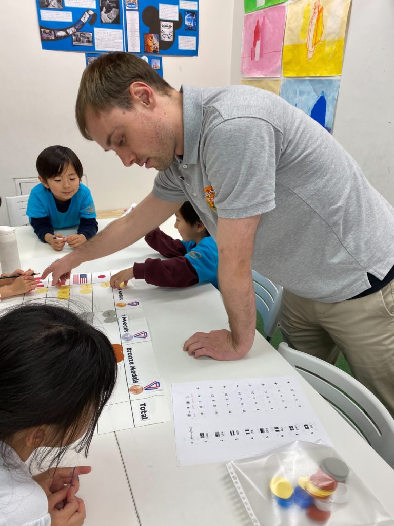 と、子どもたちも興味津々です!また、各国のメダル数を数えて、表にしました。